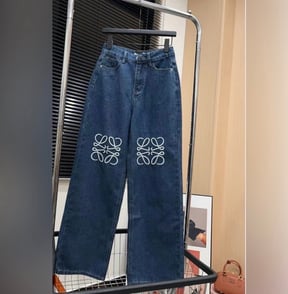 Blue Wide-Leg Jeans with White Embroidery